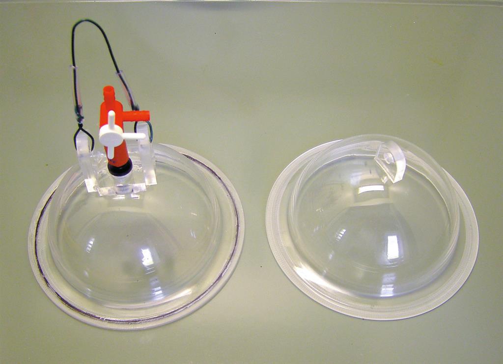 Mit den Halbkugeln aus Plexiglas können einige bekannte Vakuumversuche einfach und sicher mit einer Wasserstrahlpumpe durchgeführt werden. Sie sind auch für den Physikunterricht besonders geeignet. Das Aufblähen eines Luftballons mit abnehmendem Druck ist ebenso gut zu beobachten wie das Wachsen eines Schaumkusses. Besonders eindrucksvoll kann die Bedeutung der Luft für den Schalltransport demonstriert werden, wenn ein Wecker (oder eine Funkklingel) in die Plexiglashalbkugeln gestellt und evakuiert wird. An die untere Kugelhälfte lassen sich Gewichte hängen, mit der oberen Halbkugel können Platten aus Kunststoff gehoben werden.